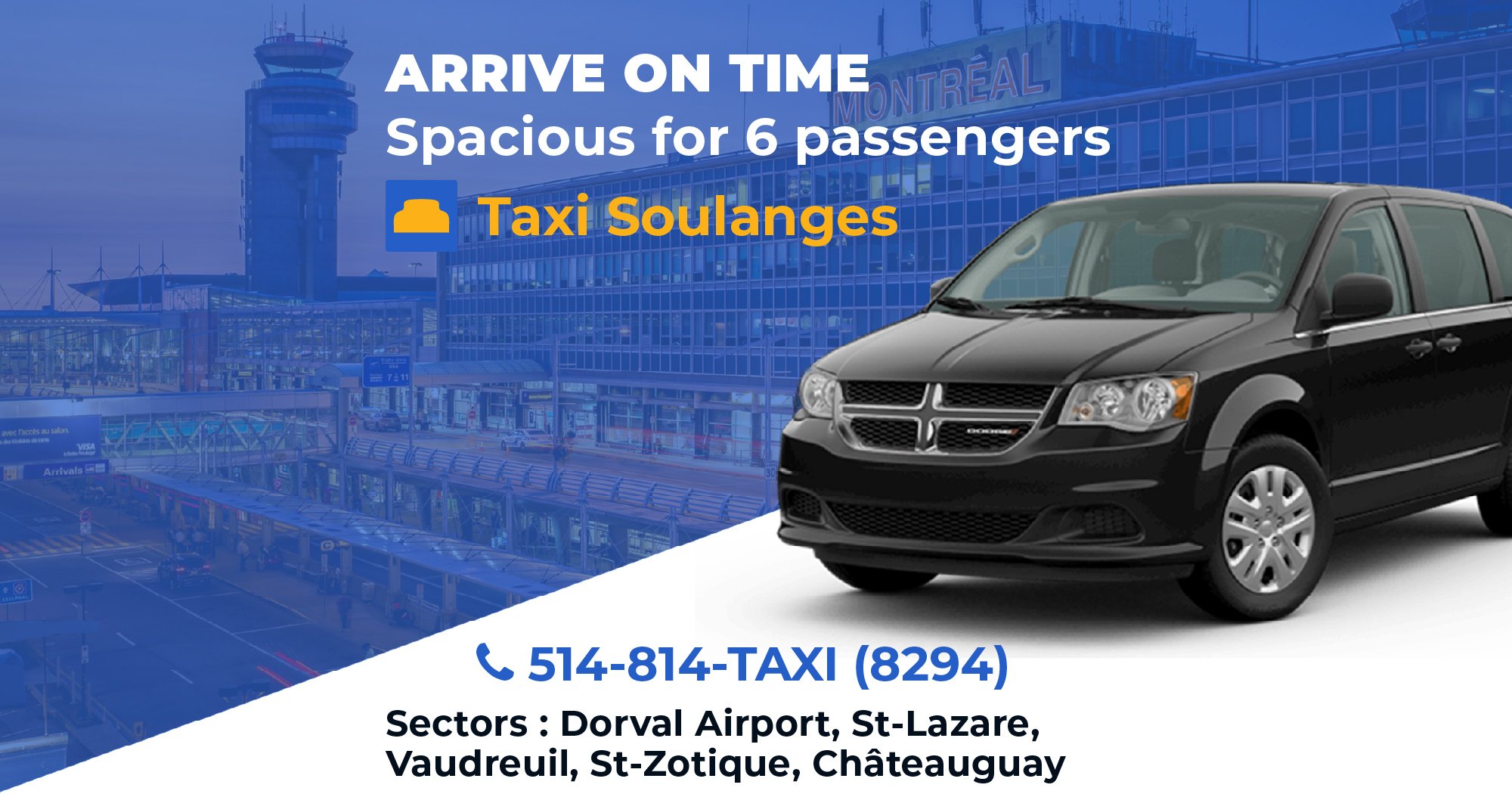 When you travel with several people, bulky luggage or family equipment (strollers, bags, suitcases), the choice of vehicle becomes key. That’s why Taxi Soulanges offers a tailored solution: a minivan that can accommodate up to six passengers, with generous space for all your personal effects, for a hassle-free ride to Montréal-Trudeau International Airport.
